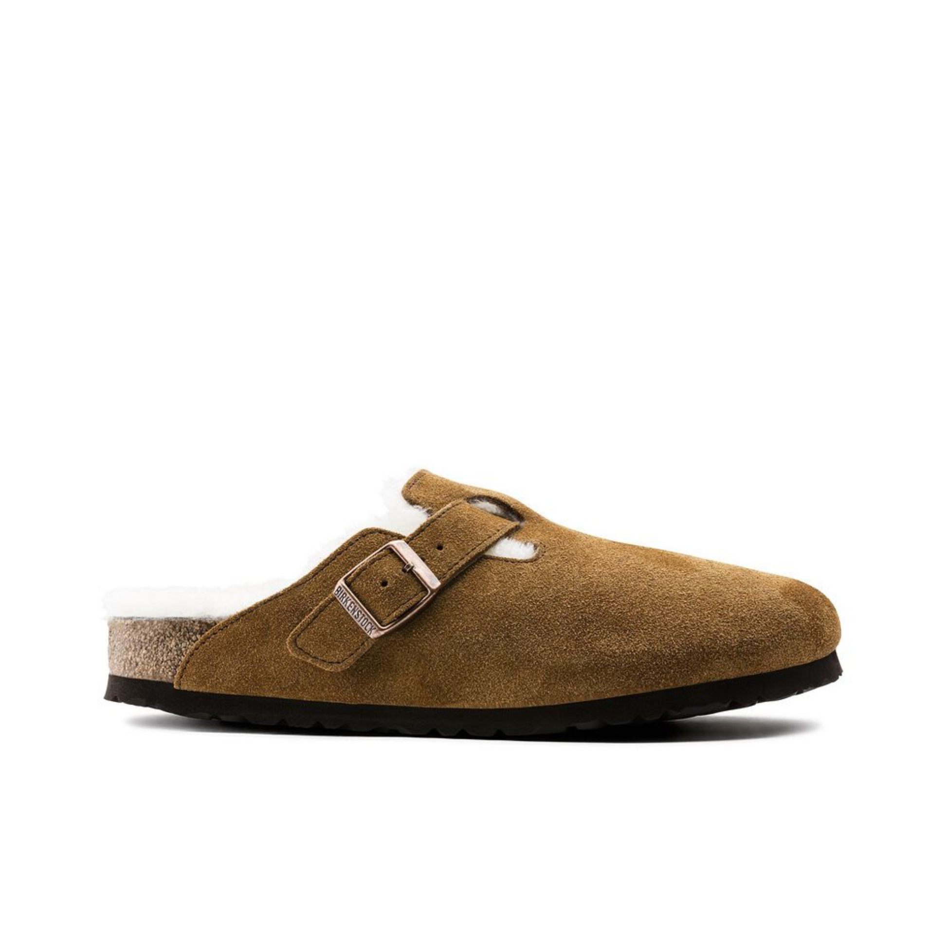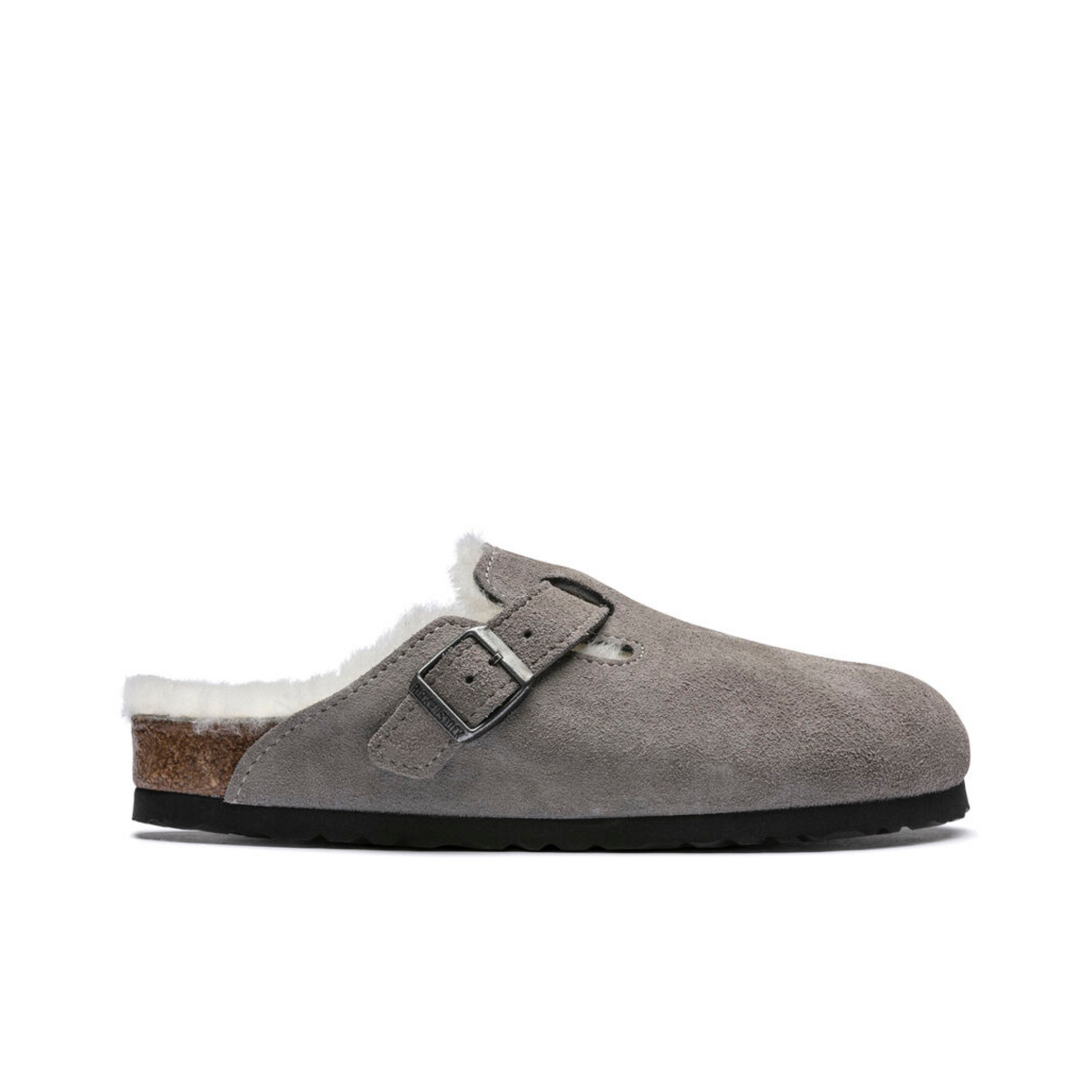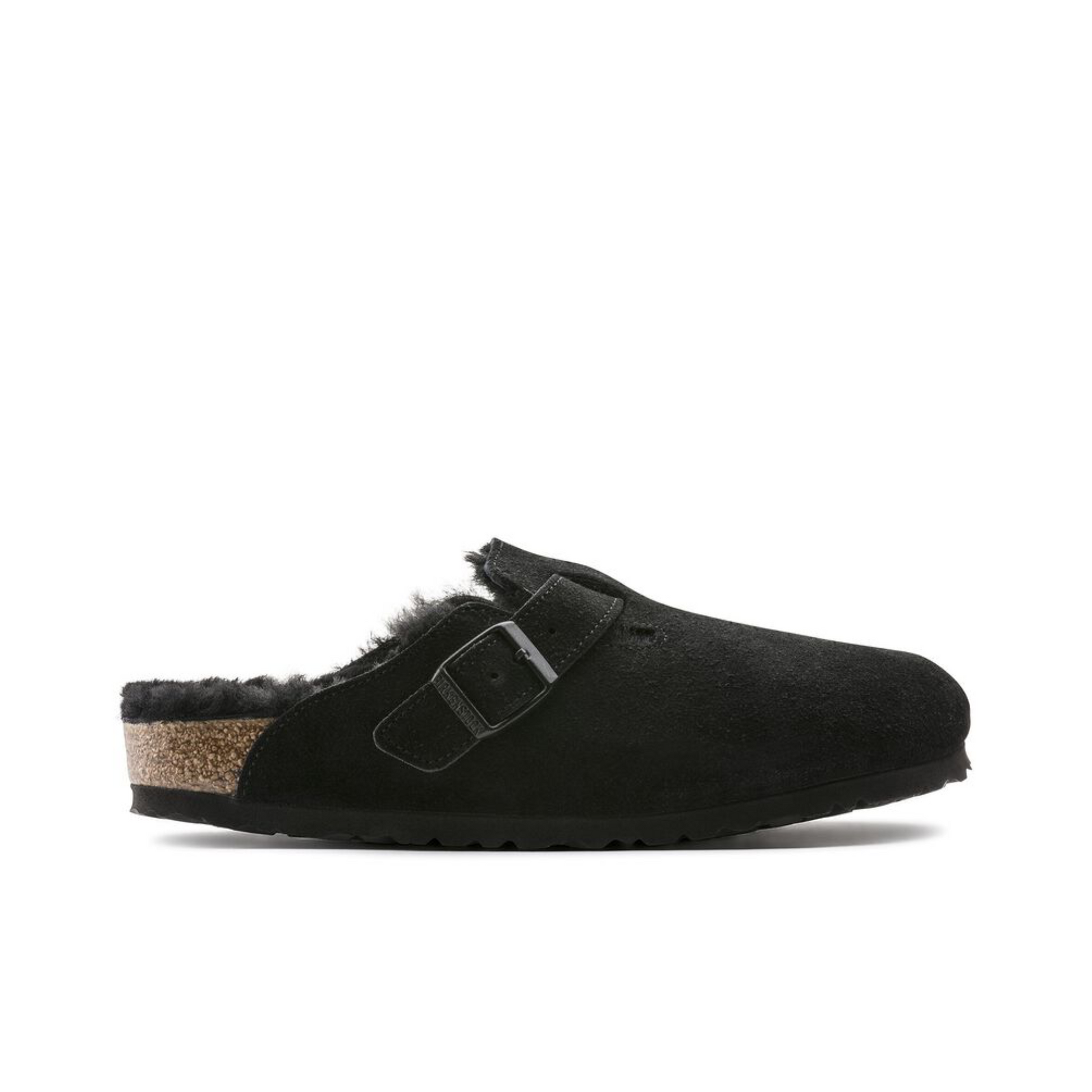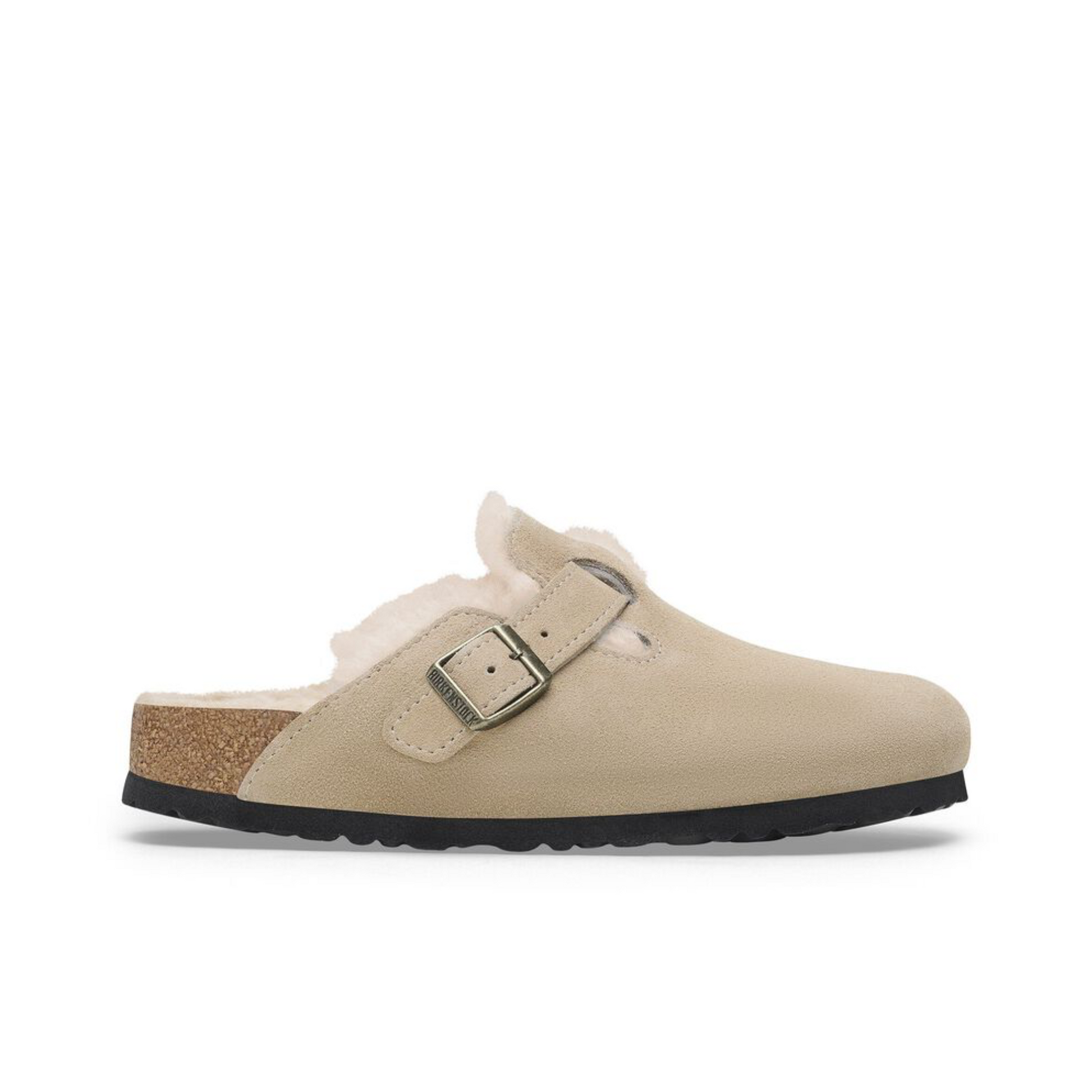 The signature slip-on clog from BIRKENSTOCK - the Boston. A casual-wear staple, perfect year round. Featuring a simple, adjustable design and contoured cork footbed that forms to the shape of the foot, the Boston is a timeless and perennial favorite. This classic model comes in an especially cozy version with genuine shearling lining the footbed and the upper. The perfect shoe for cozy winter evenings! The upper is made from soft suede.