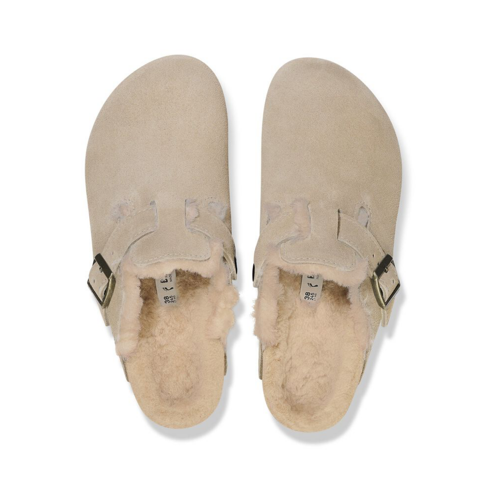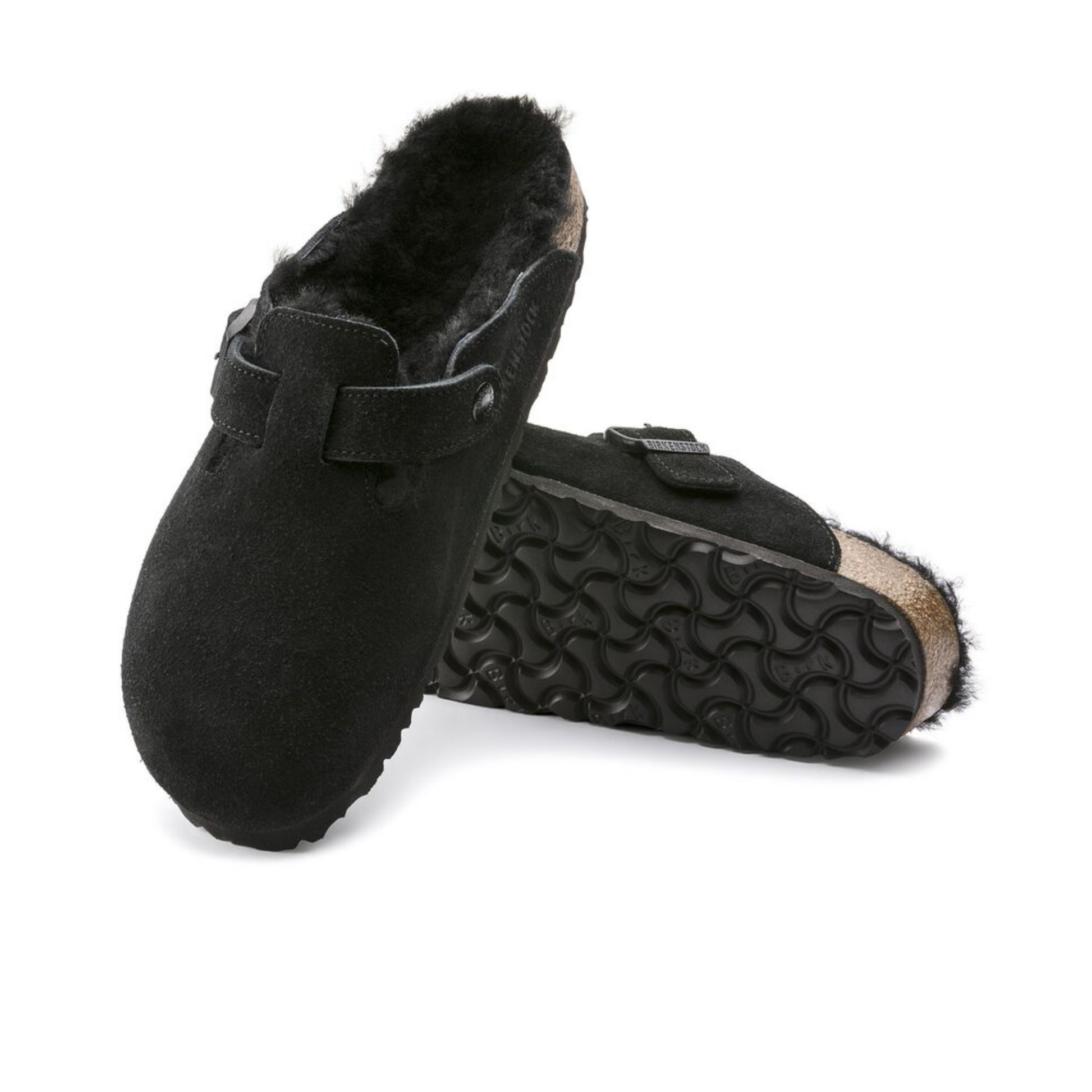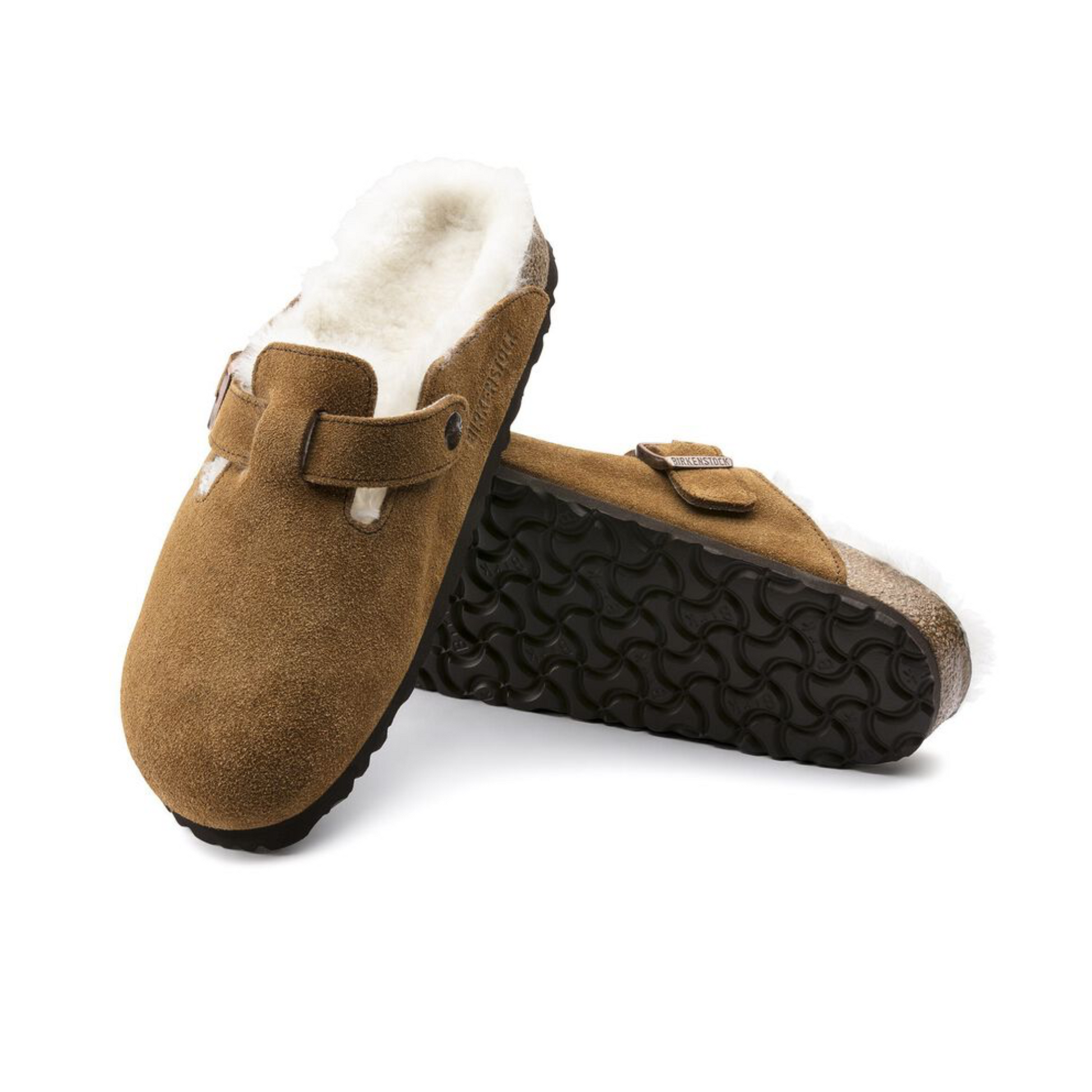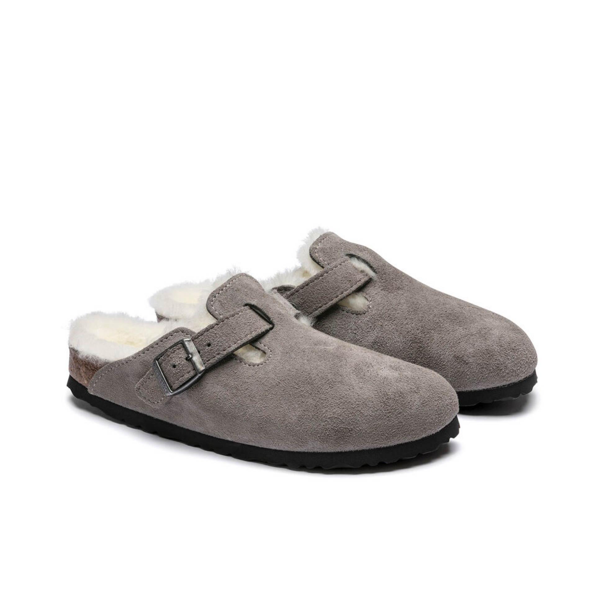 The signature slip-on clog from BIRKENSTOCK - the Boston. A casual-wear staple, perfect year round. Featuring a simple, adjustable design and contoured cork footbed that forms to the shape of the foot, the Boston is a timeless and perennial favorite. This classic model comes in an especially cozy version with genuine shearling lining the footbed and the upper. The perfect shoe for cozy winter evenings! The upper is made from soft suede.