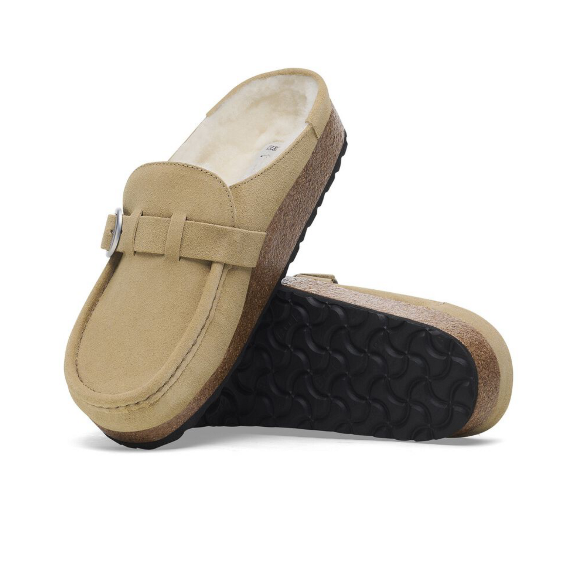 The sophisticated Buckley clog, made cozy for the colder months. Velvety suede and a genuine shearling lining elevates the slip-on experience to give you a soft landing every time. With a supportive contoured footbed to give you that perfect fit feeling.