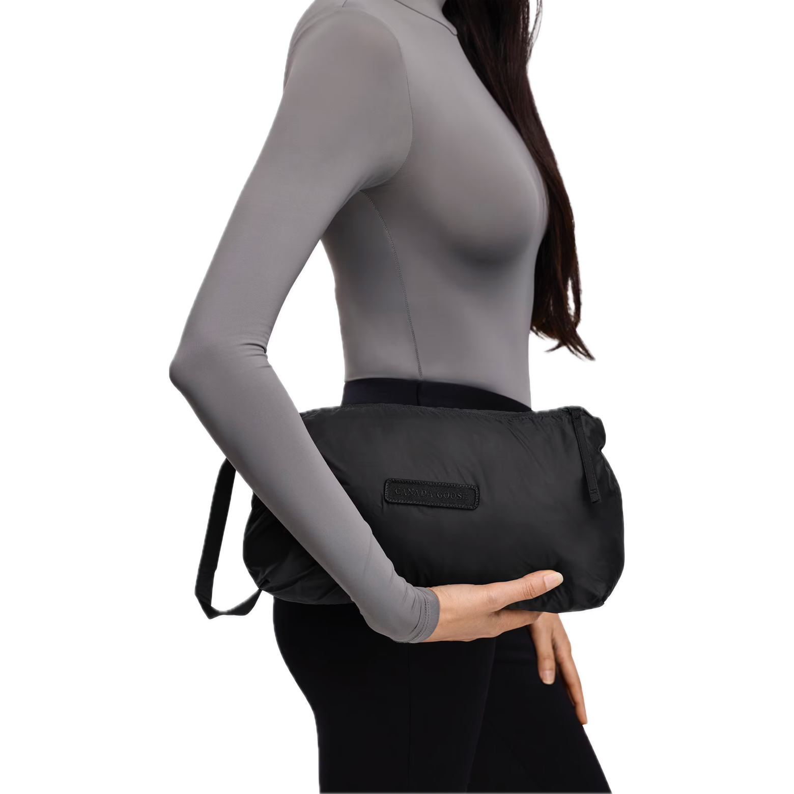 - Packable into the interior left pocket. Converts into a cinchable bag with a carrying strap