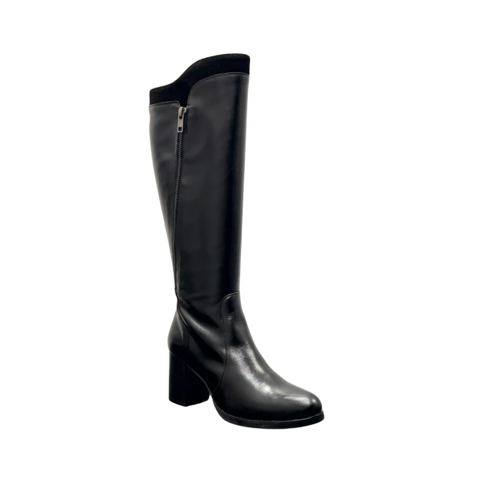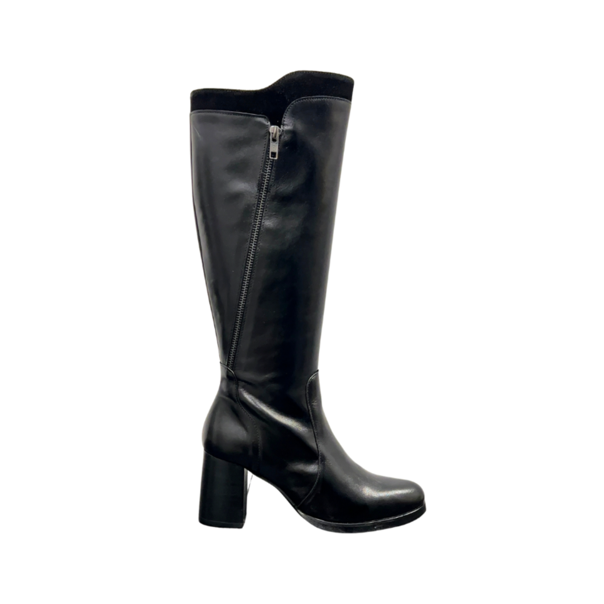 Turn heads and step out boldly with the Eric Michael VEGAS tall black leather boots! Featuring a striking 3-inch heel and a chic almond-shaped toe, these boots mix style and sass effortlessly. The playful decorative outside zipper adds a bit of edge, while the functional inside zipper makes slipping them on a breeze. Thanks to the expandable elastic panel, they comfortably accommodate a wider calf without sacrificing their sleek silhouette. Perfect for strutting through city streets or adding flair to your evening look, these boots are your ticket to confidence and fun at every step!
