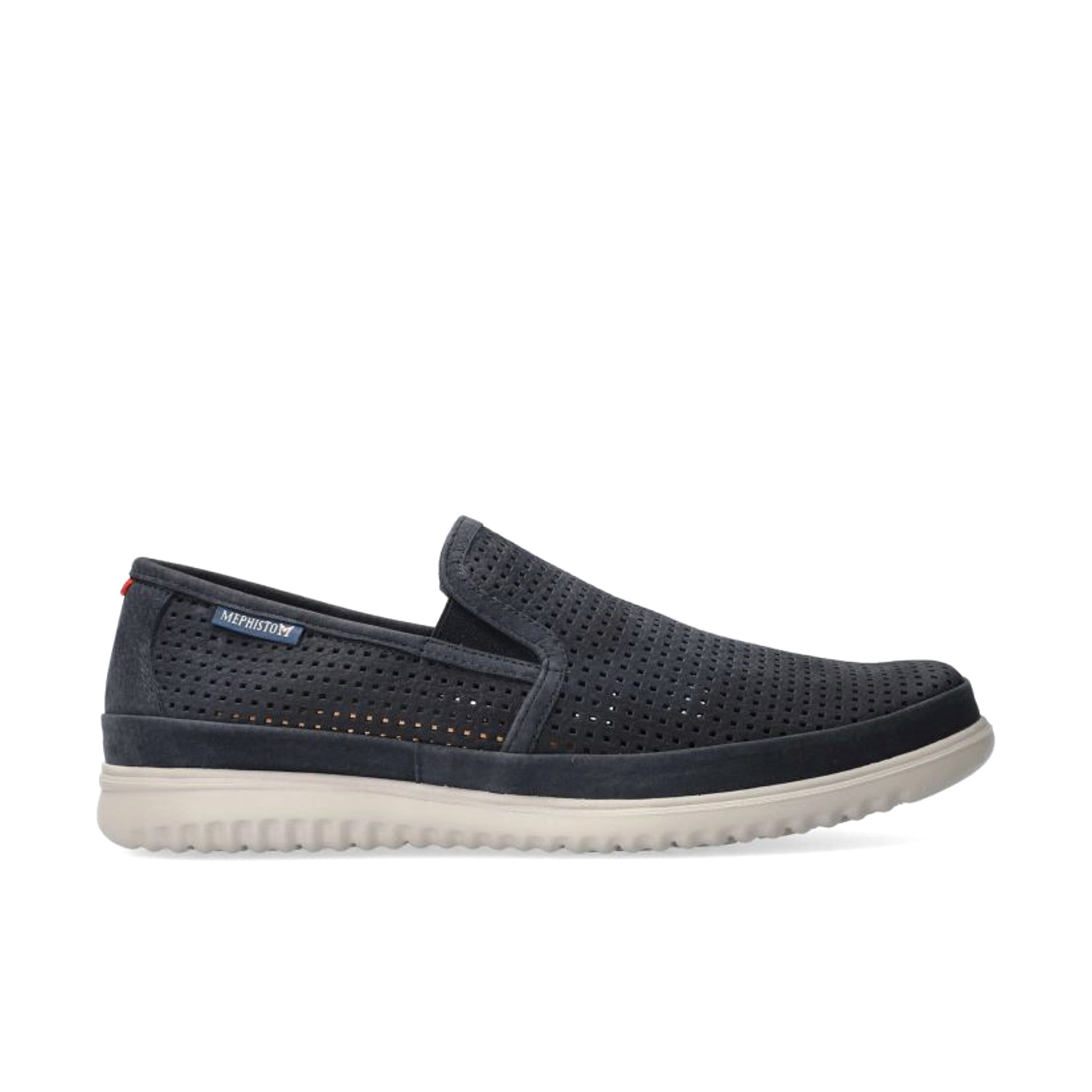 MEPHISTO TIAGO | Men Shoes Leather Nubuck. This ultra-lightweight, perforated slip-on will take you through the summer. The SHOCK-ABSORBER, in the outsole, and the detachable insole, with integrated SOFT-AIR Technology, help to minimise impact, whilst ensuring a healthy climate inside the shoe. Slip-on with elasticated inserts at the top of the foot for perfect support. Its leather lining promotes a healthy climate inside the shoe.