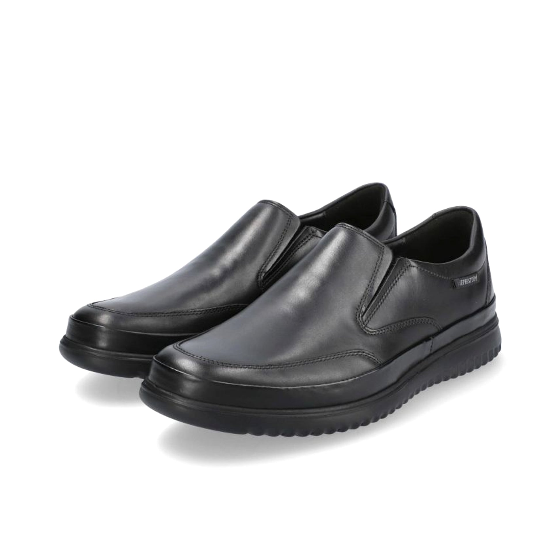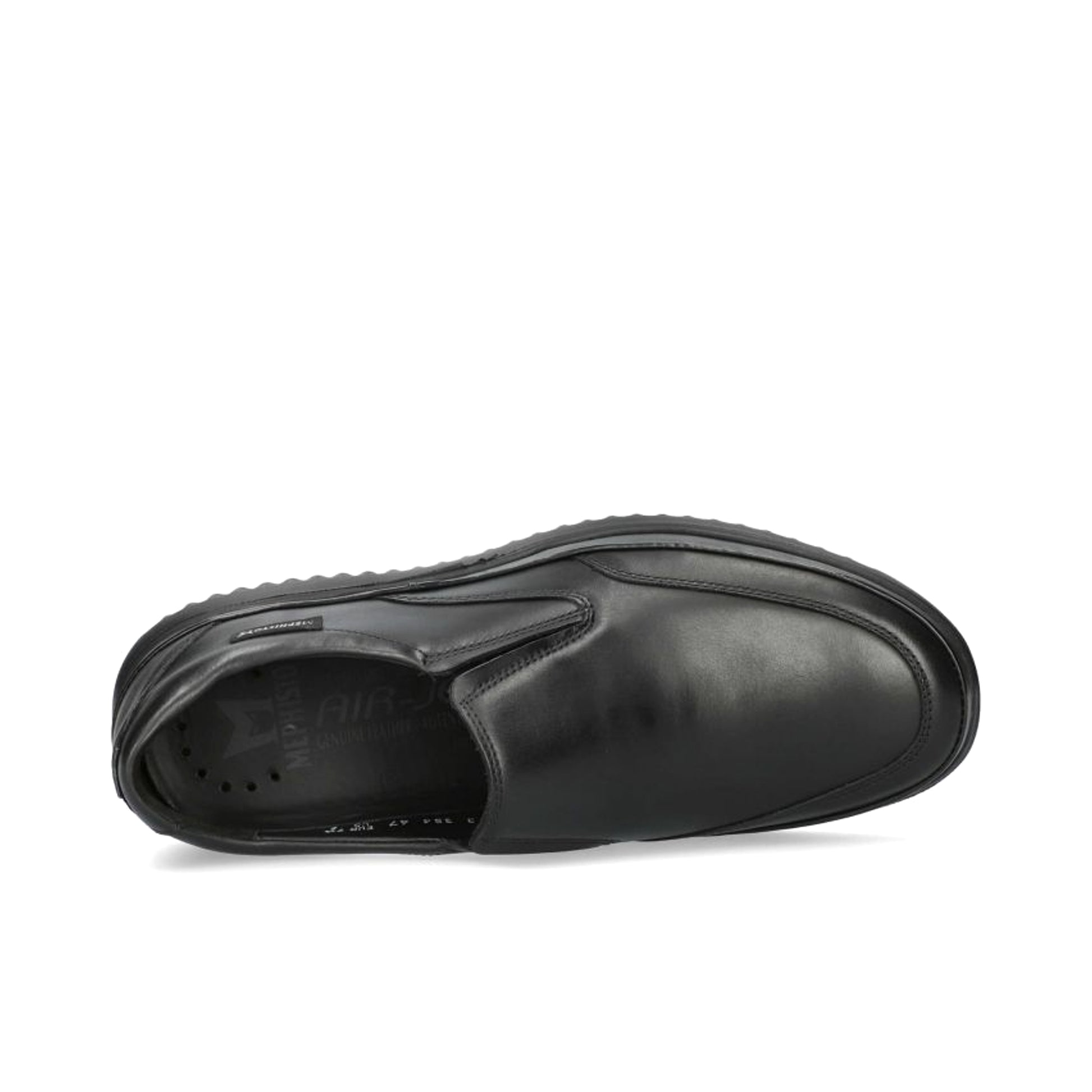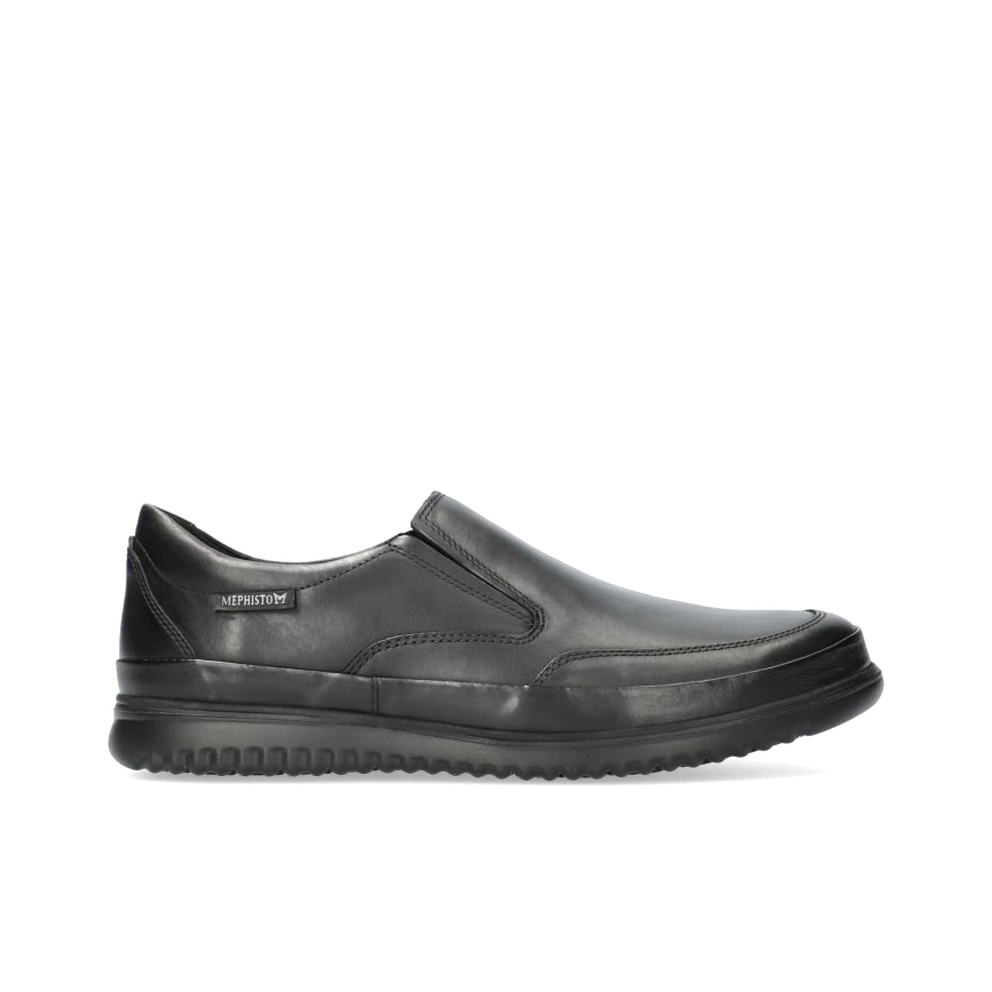 MEPHISTO TWAIN | Men Shoes Black Leather Smooth. This ultra-lightweight slip-on will win you over with its unparalleled comfort. The SOFT-AIR midsole and the SHOCK-ABSORBER, integrated in the outsole, minimise impact for a gentle, effortless walk. The leather lining guarantees an excellent fit and optimum comfort.