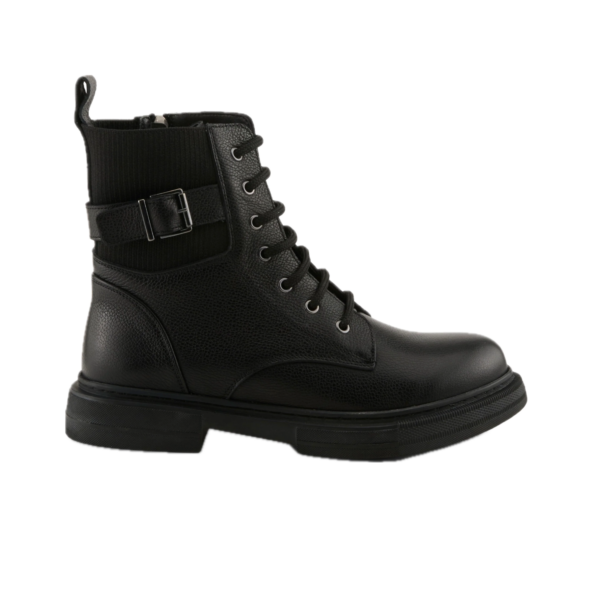 Rev up your style with these premium pebbled leather biker boots! Featuring a rugged yet refined look with laces, a side zipper, and a bold buckle, they’re built for both edge and ease. The burnished front, stretch goring, and pull tab add the perfect mix of style and convenience—ready to ride or roam in ultimate comfort!