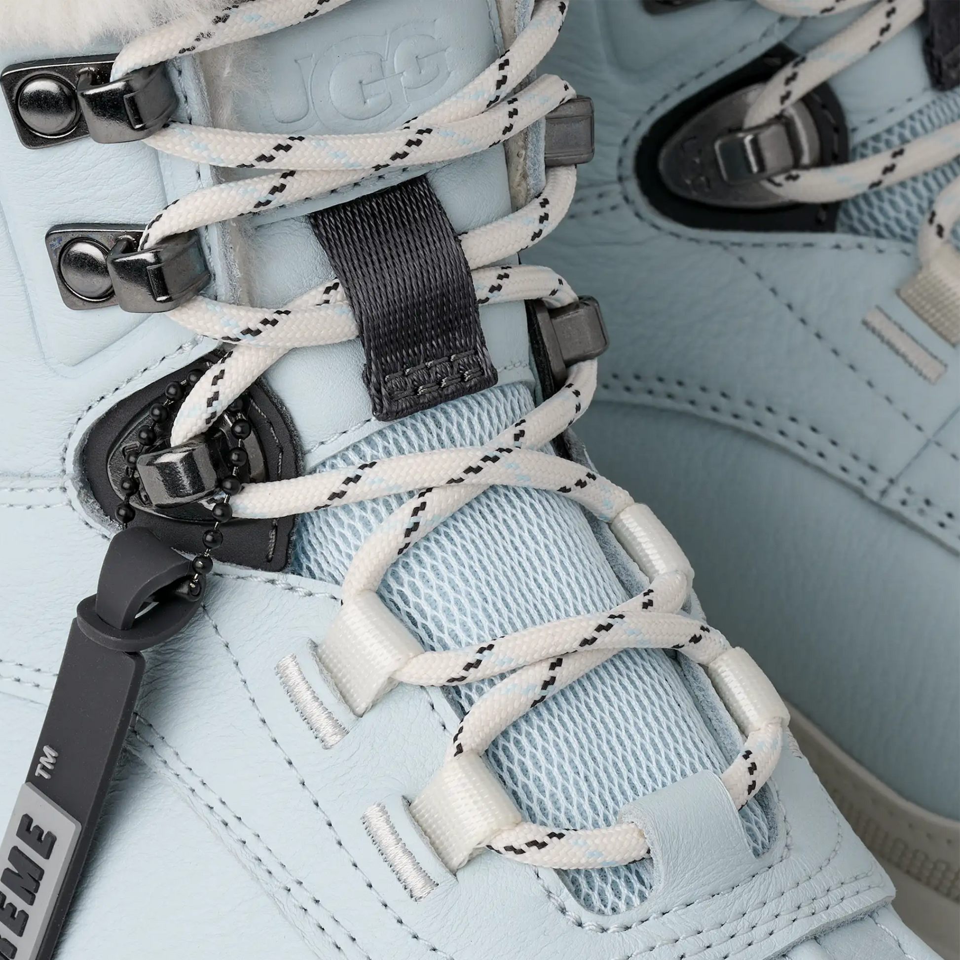Winter should be fun. So, let's get started: The shorter version of our new Adirondack Meridian offers extreme protection against cold and wet weather conditions, rated to withstand temps as low as -32˚C. The waterproof upper and gusseted tongue keep wetness out, while the high-tech GORE-TEX interior lets skin breathe. Featuring an asymmetrical topline that allows for more ankle flex for your next trek. Our signature snuggly UGGplush™ upcycled wool blend in the liner and sockliner offers unparalleled warmth and coziness in harsh conditions. The Vibram® outsole features ICETREK compound for enhanced traction on slippery or icy surfaces, from the streets to the slopes.